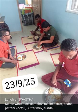 Nutritious lunch is provided for the students of Swastha Special Sc. . .