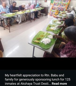 125 inmates of Akshaya Trust Destitute old age home were served wit. . .